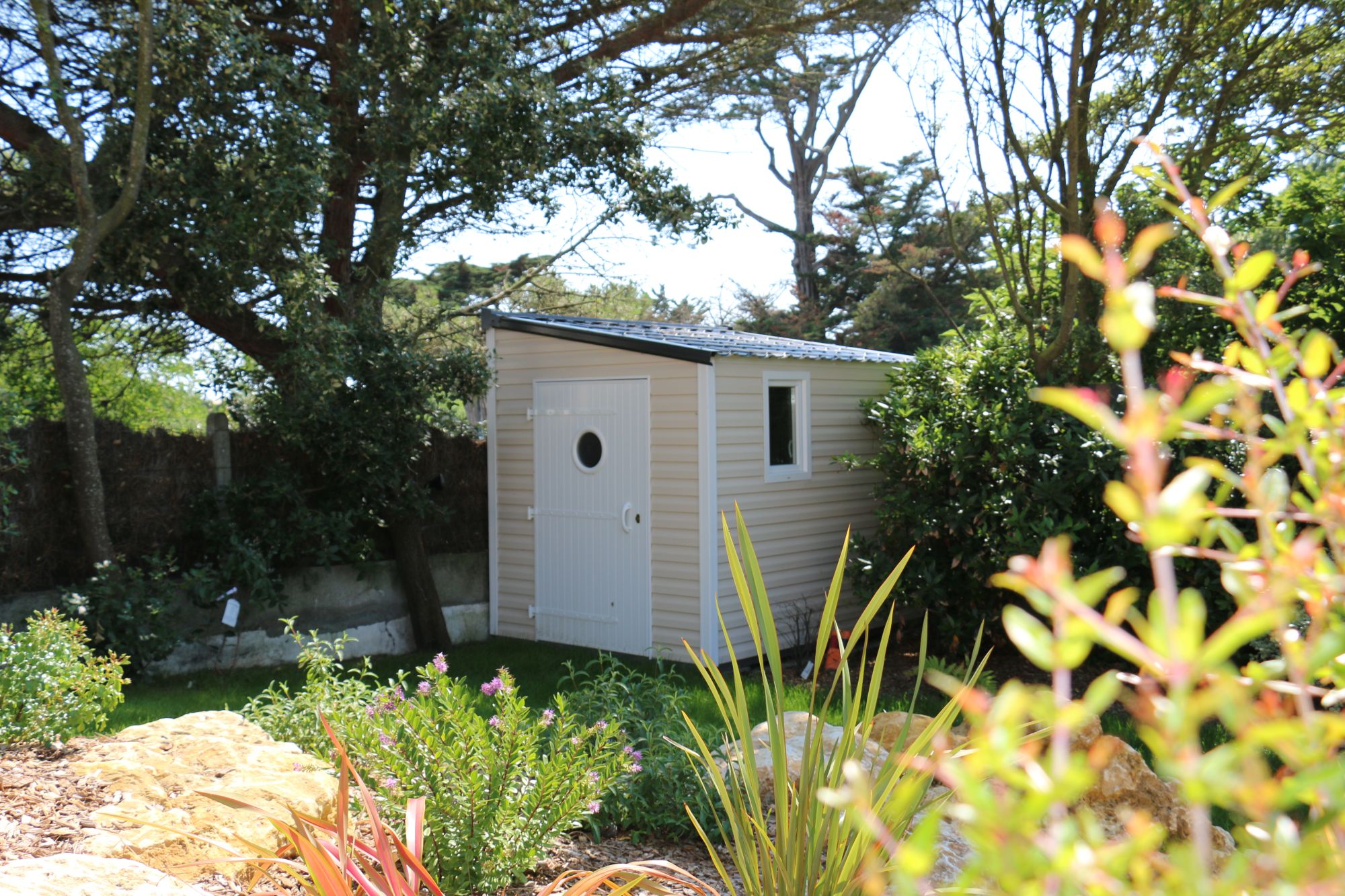 ABRI de JARDIN PVC très résistant aux chocs et aux intempéries, idéal pour le rangement des vélos, barbecues où tout autres accessoires extérieurs.